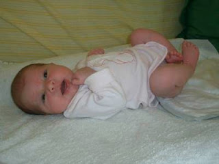 La verdad es que es una niña muy guapa (claro que yo no soy muy objetiva) y muy buena, tan solo llora para comer. Eso sí, es todo un torete, efectivamente ya pesa 4kg y 10 gr. y mide 53 cm, si sigue así en poco tiempo la tenemos crecidita.